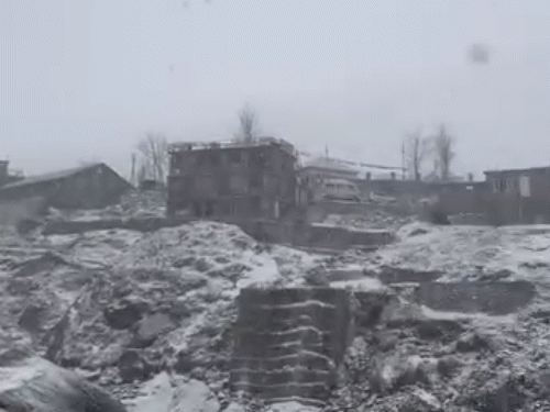हे चित्र सोनमर्गचे आहे, आजूबाजूचा परिसर बर्फात पूर्णपणे गोठला आहे.