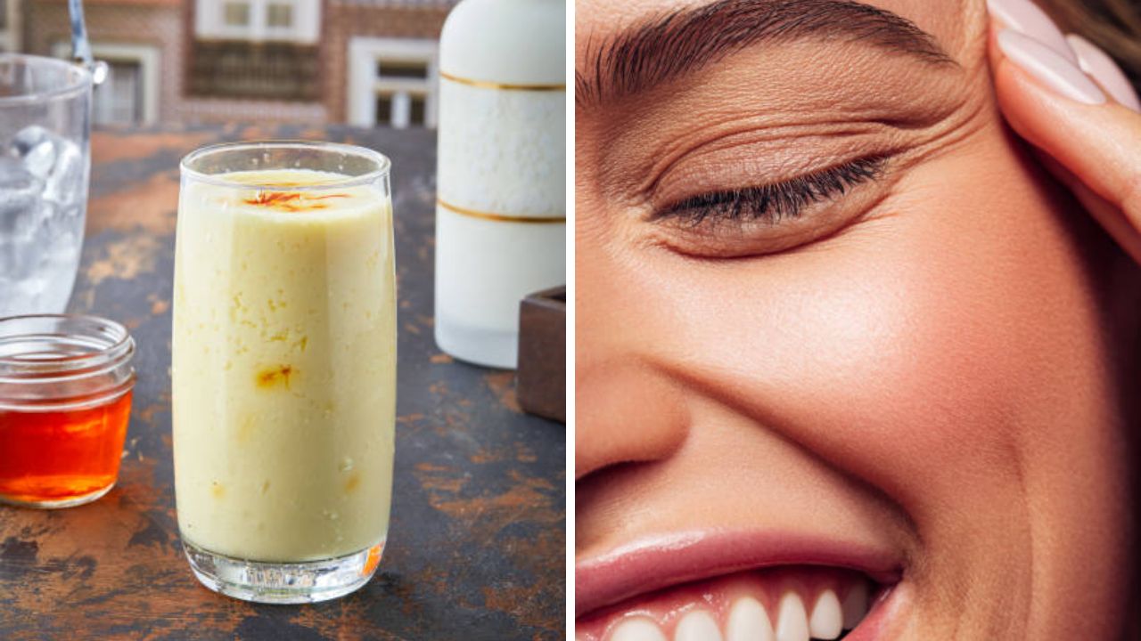 सर्व महिलांना सुंदर आणि चमकदार त्वचा हवी असते. स्त्रिया त्यांच्या खराब झालेल्या त्वचेची गुणवत्ता सुधारण्यासाठी सतत काहीतरी करत असतात. त्वचेची गुणवत्ता सुधारण्यासाठी कधी त्वचेच्या काळजीमध्ये बदल तर कधी महागड्या उत्पादनांचा वापर केला जातो. पण तरीही चेहऱ्यावर तेजस्वी चमक येत नाही. पर्यावरणातील बदल आणि त्वचेच्या इतर समस्यांमुळे त्वचेवरील चमक पूर्णपणे नष्ट होते. त्वचा खूप गडद होते आणि त्वचा कोरडी होते. चेहऱ्यावर ग्लो वाढवण्यासाठी महिला नेहमी स्किन केअरचा वापर करून त्यांच्या त्वचेची काळजी घेतात. पण यासोबतच त्वचेला आतून पोषण देणंही आवश्यक आहे. आहारात वेगवेगळे पदार्थ घेतल्याने त्वचेसह शरीराला भरपूर पोषण मिळते. आज आम्ही तुम्हाला चेहऱ्यावरील हरवलेली चमक परत मिळवण्यासाठी रात्री झोपण्यापूर्वी दुधात काय मिसळावे याबद्दल सविस्तर माहिती देणार आहोत. हे पेय नियमितपणे प्यायल्याने शरीरात अनेक सकारात्मक बदल दिसून येतात.(छायाचित्र सौजन्य – istock)