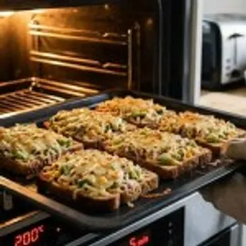 ओव्हन 200 डिग्री सेल्सिअस पर्यंत गरम करा. आता सर्व तयार ब्रेडचे तुकडे एका बेकिंग ट्रेमध्ये ठेवा आणि सुमारे 5 मिनिटे बेक करा. या वेळी चीज वितळेल आणि वर हलके सोनेरी होईल.