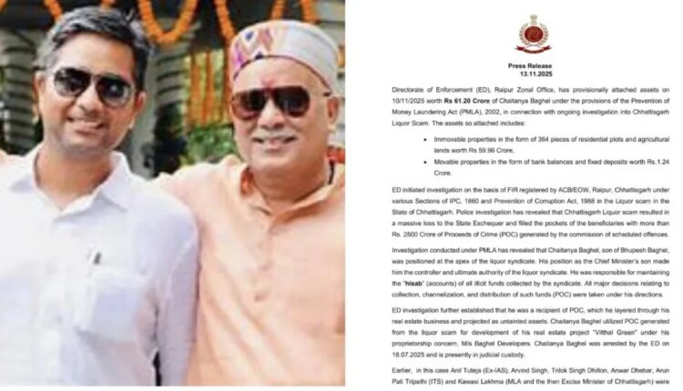 ईडीने बघेल यांच्या मुलाची ६१ कोटी रुपयांची संपत्ती जप्त केली आहे