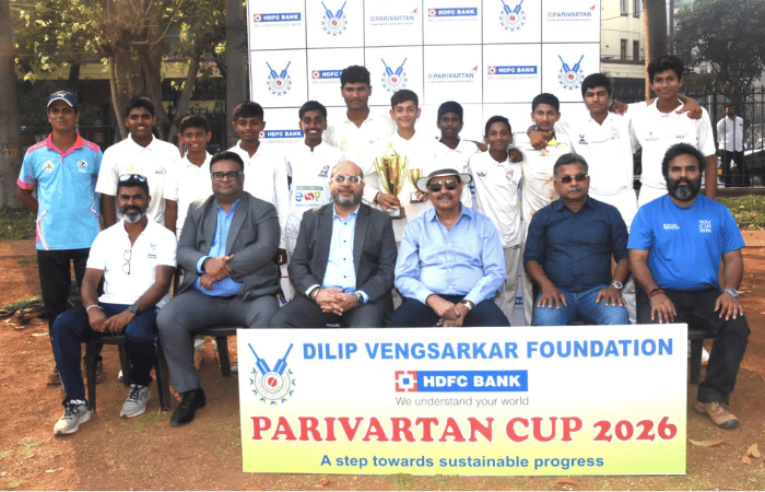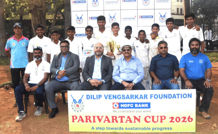 क्रिकेट बरोबरच शिक्षणही तेवढेच महत्वाचे आहे. सध्या शालेय परीक्षांचा कालावधी सुरू आहे, त्यामुळे काही काळ क्रिकेटला थोडा विराम देऊन अभ्यासावर लक्ष केंद्रित करून परीक्षेत चांगले गुण मिळवून उत्तीर्ण होण्यावर लक्ष केंद्रित करा. शेवटी आयुष्यात क्रिकेट खेळण्याचा कालावधी हा फार छोटा असतो आणि शिक्षणात तुम्ही योग्य ती प्रगती साधलीत तर यशोशिखरावर जाण्यापासून तुम्हाला कुणीही रोखू शकणार नाही”, असे हिंदुस्थानचे माजी कर्णधार दिलीप वेंगसरकर यांनी सांगितले. 15 वर्षाखालील मुलांच्या एच.डी.एफ.सी. बँक परिवर्तन कप क्रिकेट स्पर्धेच्या ओव्हल मैदान येथे झालेल्या पारितोषिक वितरण समारंभात ते बोलत होते. साईश क्रिकेट अकादमी संघाने पटेल क्रिकेट कोचिंग सेन्टर वर दोन विकेट्सनी विजय मिळवून या स्पर्धेचे जेतेपद पटकावले.