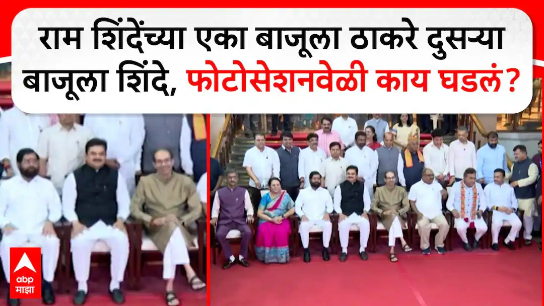 कार्यक्रम सुरू झाल्यानंतर थोड्याच वेळात सभापती राम शिंदे आणि उद्धव ठाकरे एकत्र फोटोसेशनसाठी आले. इतर आमदार आधीच उपस्थित असल्याने कार्यक्रमाला सुरुवात झाली. फोटोसेशनमध्ये राम शिंदे मध्यभागी बसले होते. त्यांच्या एका बाजूला एकनाथ शिंदे, तर दुसऱ्या बाजूला उद्धव ठाकरे बसल्याचे चित्र दिसले.