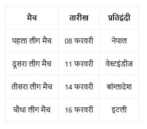 स्पर्धेतील इंग्लंडचे वेळापत्रक