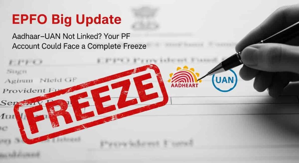 EPFO चा कडक नियम: UAN शी आधार लिंक न केल्यास PF खाते गोठवले जाईल, पैसे जमा करण्यात अडचणी येतील.