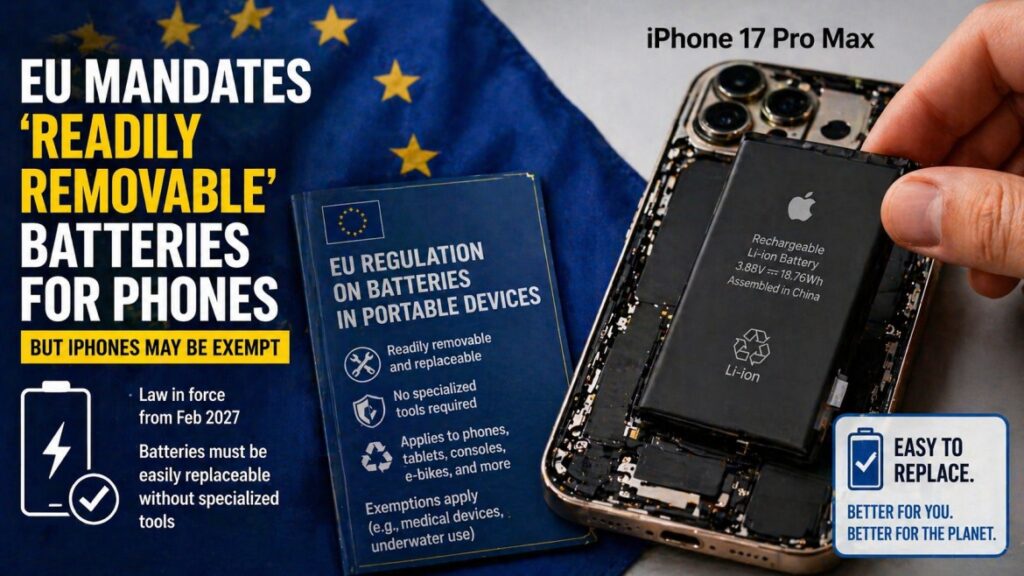 तरीही नियमात तांत्रिक सुटकेचा मार्ग देखील समाविष्ट आहे. ज्या उपकरणांच्या बॅटरी 1,000 चार्ज सायकलनंतर त्यांच्या क्षमतेच्या किमान 80 टक्के टिकवून ठेवतात त्यांना सूट देण्यात आली आहे. हे कलम प्रवेशापासून टिकाऊपणाकडे लक्ष केंद्रित करते. जर बॅटरी पुरेशी दीर्घकाळ टिकली, तर युक्तिवाद संपतो, सहज बदलण्याची गरज कमी होते.