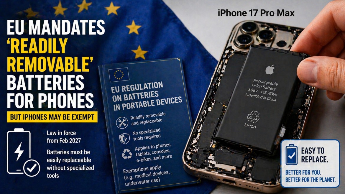 इलेक्ट्रॉनिक्समध्ये दुरुस्तीची क्षमता सुधारण्यासाठी व्यापक प्रयत्नांचा एक भाग म्हणून कायदेकर्त्यांनी नियम तयार केला आहे. स्कोप स्मार्टफोन्सच्या पलीकडे टॅब्लेट, गेम कन्सोल, ई-बाईक आणि अगदी खेळण्यांपर्यंत विस्तारतो. वैद्यकीय उपकरणे आणि पाण्याखालील वापरासाठी असलेली उत्पादने वगळण्यात आली आहेत, त्या श्रेणींमध्ये सुरक्षा आणि डिझाइन मर्यादा प्रतिबिंबित करतात.