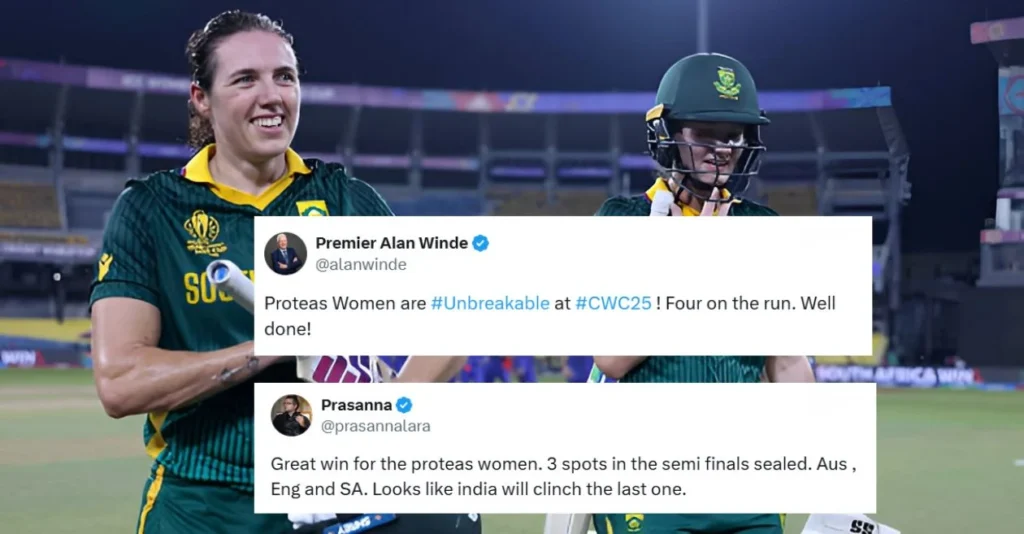 महिला विश्वचषक 2025 मध्ये दक्षिण आफ्रिकेने श्रीलंकेवर क्लिनिकल 10 गडी राखून विजय मिळवून उपांत्य फेरीच्या जवळ जाताना चाहत्यांची प्रतिक्रिया दिली.