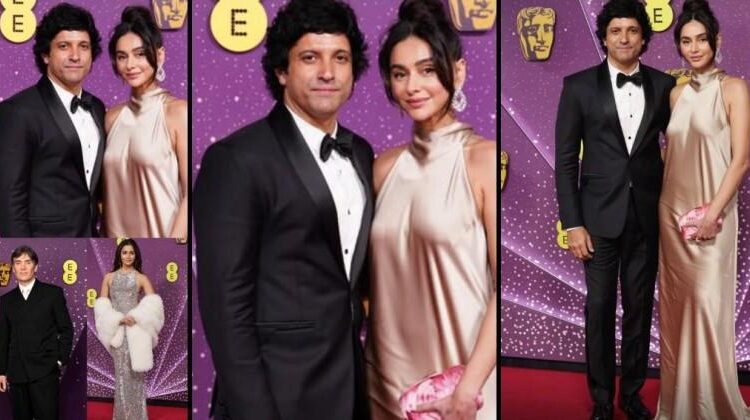 मुख्य समारंभाच्या आधी, या जोडीने बाफ्टा नॉमिनीज पार्टीला देखील हजेरी लावली आणि फॅशनची आणखी एक फेरी दिली. फरहानने अधिक आरामशीर पण तीक्ष्ण दिसण्यासाठी टाय सोडून काळ्या शर्टसह तयार केलेला राखाडी सूट परिधान केला.