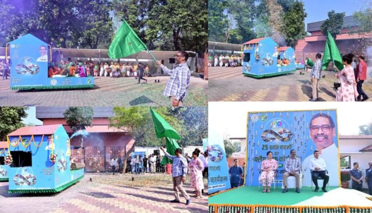 रांची: झारखंडच्या स्थापनेच्या 25 व्या वर्षाच्या निमित्ताने माहिती आणि जनसंपर्क विभागातर्फे मंगळवारी मुख्यमंत्र्यांच्या निवासी संकुलात जनजागृतीसाठी चालवल्या जाणाऱ्या प्रसिद्धी वाहनांचा “फ्लेग ऑफ कार्यक्रम” आयोजित करण्यात आला होता. मुख्यमंत्री हेमंत सोरेन आणि आमदार कल्पना सोरेन यांनी प्रचाराच्या वाहनांना हिरवी झेंडी दाखवली. ही प्रसिद्धी वाहने राज्यातील सर्व जिल्हे, ब्लॉक आणि गावांमध्ये फेरफटका मारून झारखंडच्या 25 वर्षांच्या कामगिरीची, लोककल्याणकारी योजनांची आणि विकासकामांची माहिती लोकांना देतील. या वाहनांच्या माध्यमातून युवक, महिला, शेतकरी आणि समाजातील सर्व घटकांना राज्याच्या एकात्मिक विकासात सहभागी होण्यासाठी प्रवृत्त केले जाईल.