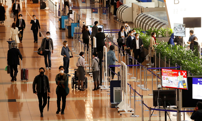 टोकियो आंतरराष्ट्रीय विमानतळावरील प्रवासी, ज्याला सामान्यतः टोकियो, जपानमधील हानेडा विमानतळ म्हणून ओळखले जाते, ऑक्टोबर 23, 2020. रॉयटर्सचा फोटो