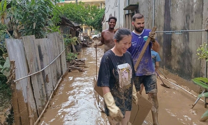 2 ऑक्टोबर रोजी हे जियांग सिटीमधील त्यांच्या घरातून दीनह थी बिन्ह आणि तिच्या कुटुंबीयांनी चिखल साफ करण्यासाठी धडपडत असताना, परदेशी अभ्यागतांकडून मदत मिळाल्यामुळे त्यांना आश्चर्य वाटले.