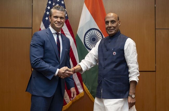 नवी दिल्ली. संरक्षण मंत्री राजनाथ सिंह आणि अमेरिकेचे युद्ध सचिव पीट हेगसेथ यांची क्वालालंपूर येथे भेट झाली, जिथे दोन्ही देशांनी दहा वर्षांच्या संरक्षण फ्रेमवर्क कराराची औपचारिकता केली. भारत-अमेरिका सामरिक आणि संरक्षण सहकार्य वाढवण्याच्या दिशेने हे एक मोठे पाऊल आहे. दोन्ही बाजूंच्या वरिष्ठ अधिकाऱ्यांच्या उपस्थितीत स्वाक्षरी केलेला हा करार, इंडो-पॅसिफिक प्रदेशात लष्करी सहकार्य, क्षमता वाढवणे आणि संयुक्त प्रकल्पांवर केंद्रित असलेला दीर्घकालीन रोडमॅप स्थापित करतो.