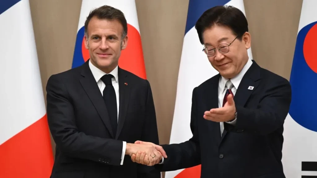 फ्रान्स दक्षिण कोरिया होर्मुझ रणनीती: मध्यपूर्वेत सुरू असलेल्या युद्धामुळे निर्माण झालेली जागतिक आर्थिक अनिश्चितता आणि होर्मुझच्या सामुद्रधुनीवर इराणचे नियंत्रण असताना, फ्रान्स आणि दक्षिण कोरियाने या संकटाचा सामना करण्यासाठी एकजूट दाखवली आहे. शुक्रवारी सोलमध्ये झालेल्या शिखर परिषदेदरम्यान, फ्रान्सचे अध्यक्ष इमॅन्युएल मॅक्रॉन आणि दक्षिण कोरियाचे अध्यक्ष ली जे म्युंग यांनी महत्त्वपूर्ण जलमार्ग पुन्हा सुरू करण्यासाठी एकत्र काम करण्याचे मान्य केले.