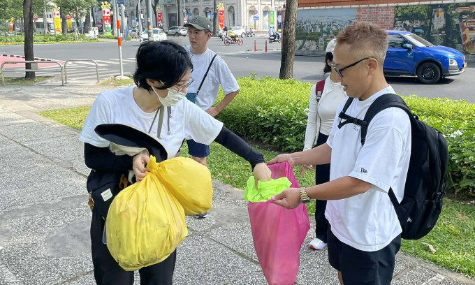 29 मार्च रोजी सकाळी 7:30 वाजता, 48 वर्षीय तरुण डझनभर चिमटे, प्लास्टिकच्या पिशव्या आणि टी-शर्ट घेऊन बेन थान वॉर्डमधील 30 एप्रिल पार्कमध्ये पोहोचतो आणि इतर स्वयंसेवकांची वाट पाहत असतो.