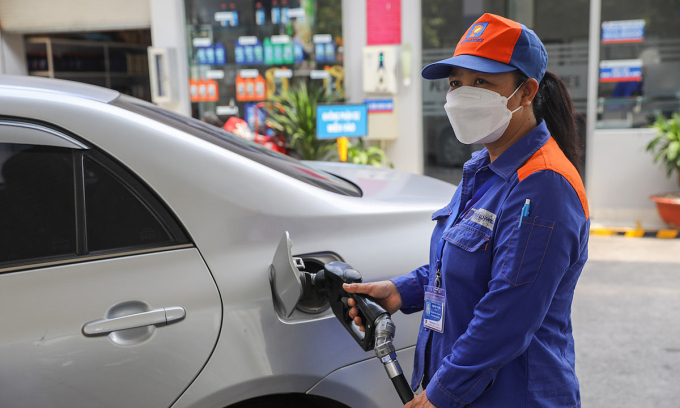 HCMC मधील इंधन स्टेशनवर एक कर्मचारी कार रिफिल करत आहे. रीड/क्विन ट्रॅन द्वारे फोटो |