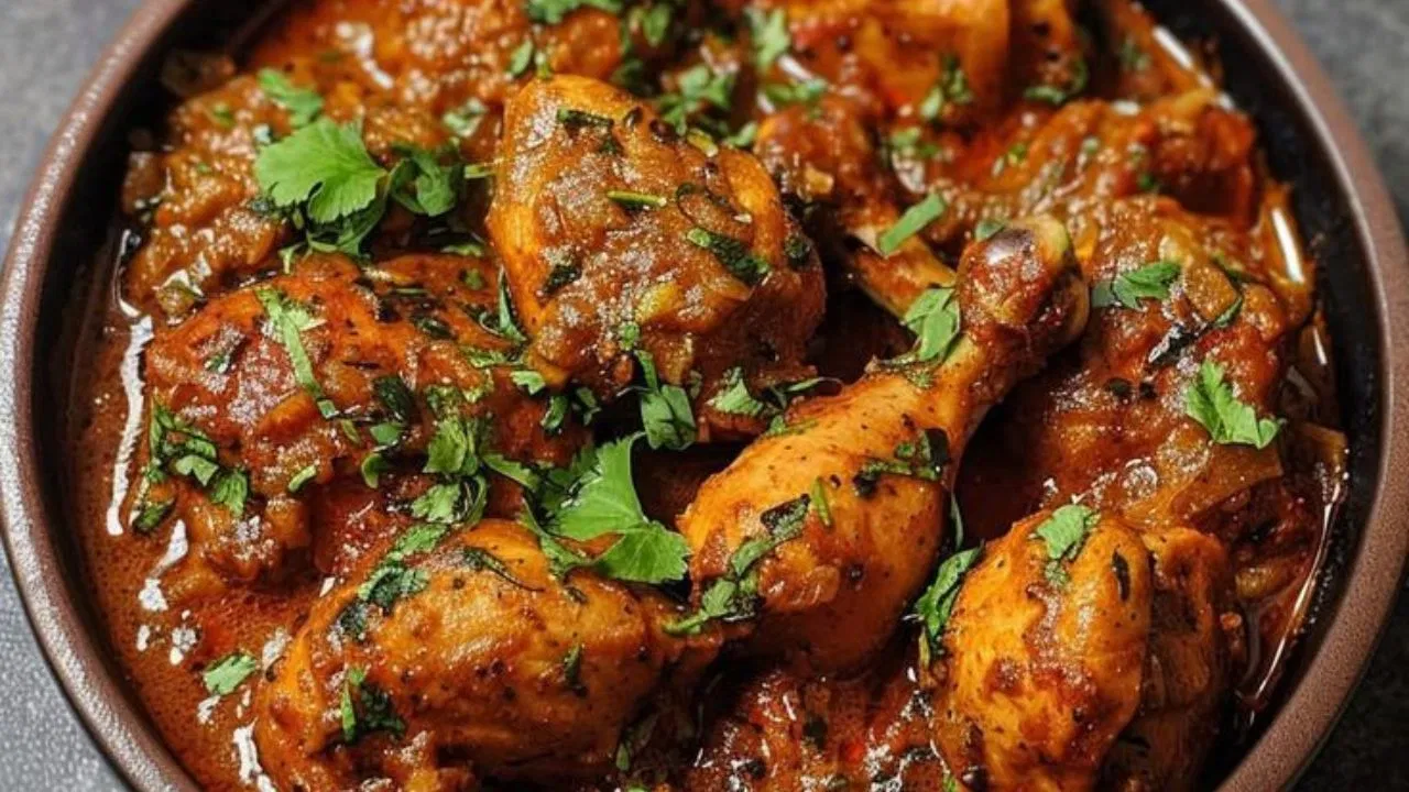 - झाकण ठेवून मंद आचेवर 20-25 मिनिटे चिकन मऊ होईपर्यंत आणि ग्रेव्ही घट्ट होईपर्यंत शिजवा.