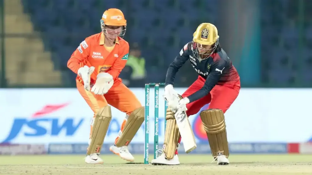 गुजरात जायंट्सने नाणेफेक जिंकून प्रथम गोलंदाजी करण्याचा निर्णय घेतला. आरसीबीची सुरुवात ग्रेस हॅरिस आणि स्मृती मानधना यांनी केली. ग्रेस हॅरिस लवकर बाद झाला, पण गौतमी नाईकने स्मृतीसोबत तिसऱ्या विकेटसाठी भक्कम भागीदारी केली. कर्णधार स्मृती बाद झाल्यानंतर गौतमीने जबाबदारी स्वीकारली आणि WPL पन्नास धावांची पहिली इनिंग खेळली. त्याच्या मदतीने आरसीबीने 20 षटकांत 6 बाद 178 धावा केल्या.