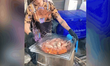 थायलंडच्या रस्त्यावर विजेच्या वेगाने ग्रील केलेले महाकाय कोळंबी