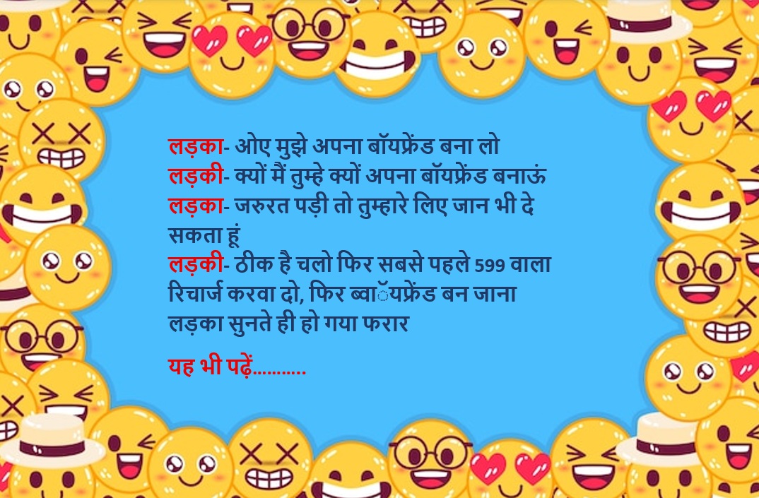 मुलगी- ठीक आहे, मग आधी ५९९ रुपयांचा रिचार्ज कर, मग बॉयफ्रेंड बन.