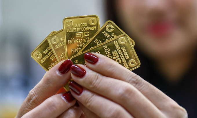हो ची मिन्ह सिटीमधील एका दुकानात एका व्यक्तीकडे सोन्याच्या बार आहेत. रीड/क्विन ट्रॅन द्वारे फोटो |