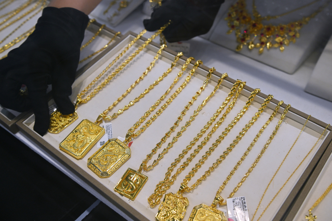 हनोईतील एका दुकानात सोन्याचे दागिने दिसले. VnExpress/Giang Huy द्वारे फोटो