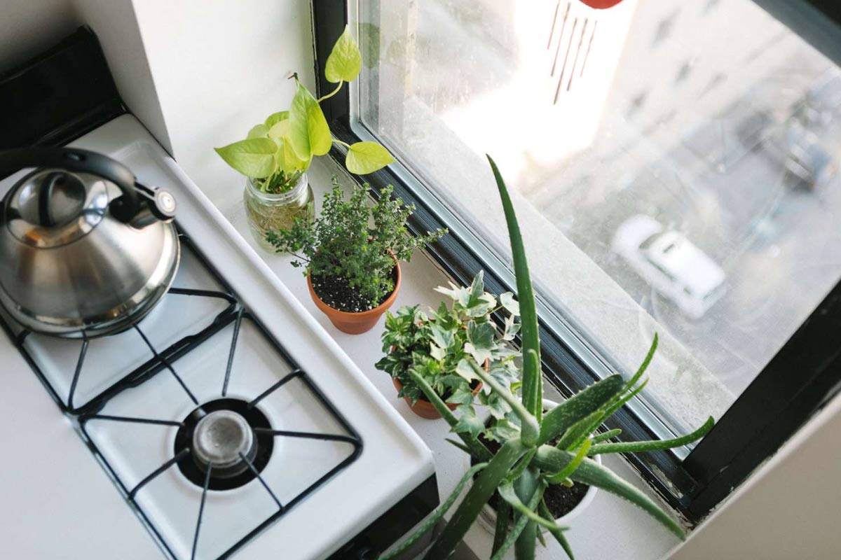 २) इनडोअर प्लांट्स खिडकीजवळील लहान टबमध्ये ठेवता येतात. मनी प्लांट, तुळशी किंवा जेड प्लांट यासारख्या वनस्पती खोलीतील हवा शुद्ध करतात आणि लाकूड घटक सक्रिय करतात. त्यामुळे संसार वाढतो आणि स्वयंपाक करताना मन प्रसन्न होते.