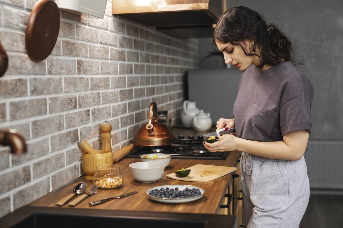 ३) स्वयंपाकासाठी प्लास्टिकच्या ऐवजी लाकडी हँडल, चॉपस्टिक्स किंवा चॉपिंग बोर्ड वापरणे अधिक प्रभावी आहे. लाकूड आगीची उष्णता शांत करते आणि स्थिरता आणते. स्वयंपाकघरात लावलेली लाकडी साधनेही सर्जनशीलता वाढवण्यास मदत करतात.