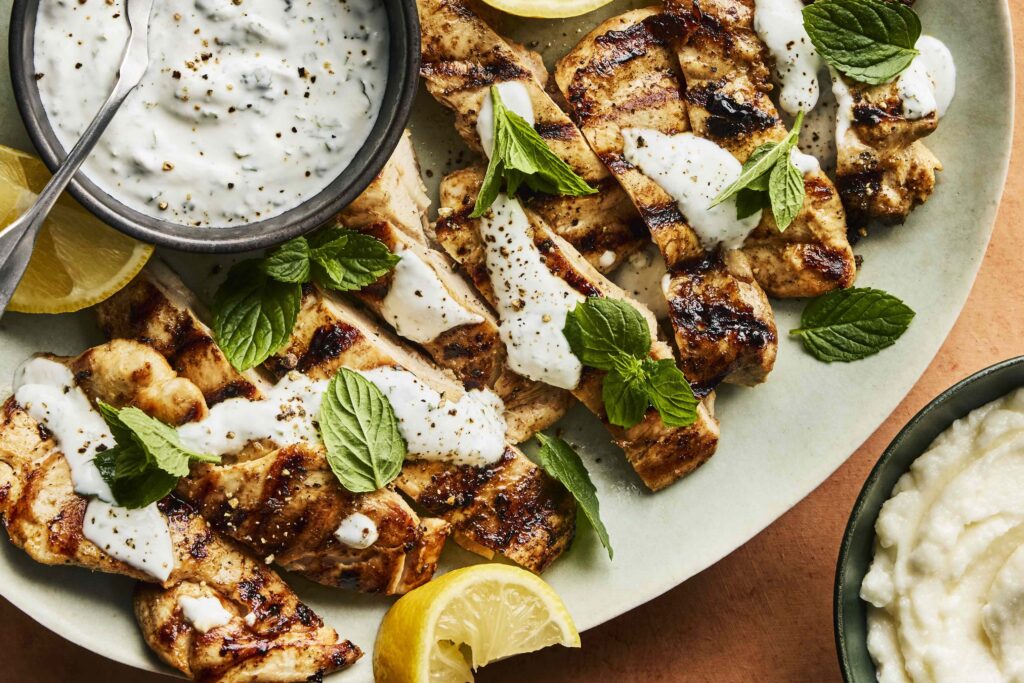 लसूण-दही सॉससह ग्रील्ड चिकन