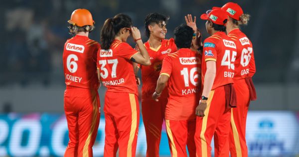 यानंतर गुजरातच्या गोलंदाजांनी सामन्यावर पूर्ण वर्चस्व मिळवलं. रेणुका सिंहने हरलीन देओलला, तर राजेश्वरी गायकवाड हिने दीप्ती शर्मा आणि श्वेता सहरावत यांना बाद करत दबाव वाढवला. राजेश्वरीने एकूण तीन विकेट्स घेतल्या, तर रेणुका सिंह आणि सोफी डिवाइन यांनी प्रत्येकी दोन विकेट्स घेतल्या.