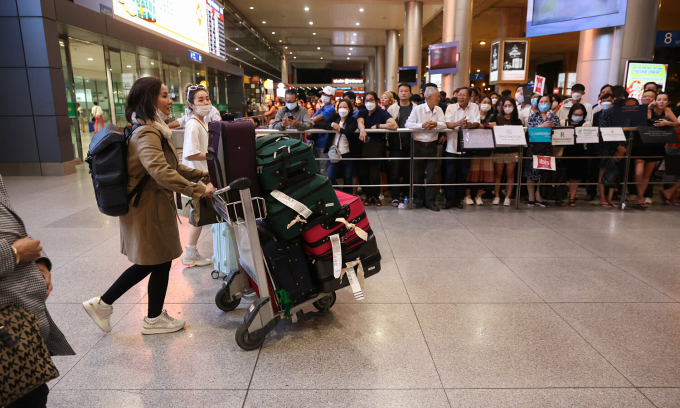 हो ची मिन्ह सिटी, जानेवारी 2023 मध्ये टॅन सोन नॉट आंतरराष्ट्रीय विमानतळावर प्रवासी त्यांचे सामान एका ट्रॉलीवर हलवत आहेत. वाचा/क्विन ट्रॅन द्वारे फोटो