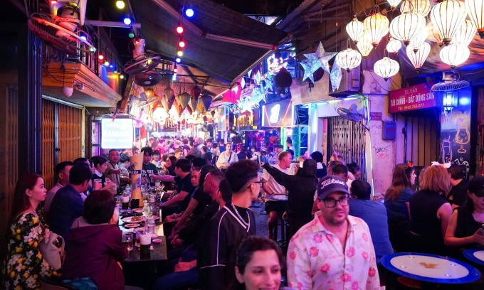 रात्री हनोईच्या जुन्या क्वार्टरमध्ये पर्यटक. वाचा/होआंग गिआंग द्वारे फोटो