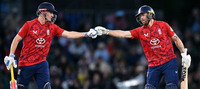 हॅरी ब्रूक आला आणि फिल सॉल्टसोबत तिसऱ्या विकेटसाठी १२९ धावा जोडल्या.