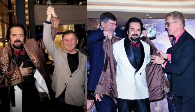 चित्रात: (डावीकडे) चित्रपट निर्माते अकबर खान आणि HE मारत माझिडोविच इस्लामोव्ह, सह-अध्यक्ष आणि BRICS विश्लेषणात्मक धोरण आणि सुरक्षा समन्वय परिषदेचे प्रमुख, सांस्कृतिक सहकार्याच्या उत्सवासाठी हात वर करताना. (उजवीकडे) प्रसिद्ध रशियन लेखक, दूरदर्शी आणि विश्लेषक ॲलेक्सी डेव्हिडॉव्स्की आणि डॉ. सर्गेई ड्वोरियानोव्ह, ब्रिक्स कल्चर मीडिया फोरमचे उपाध्यक्ष आणि ऑपेरा 'महाभारत'चे प्रवर्तक; अकबर खानला वारसा आणि सन्मानाचे प्रतीक असलेल्या HE मारत माझिदोविच इस्लामोव्ह यांच्या आजोबांचा पारंपारिक किर्गिझ झगा घालण्यास मदत करा.