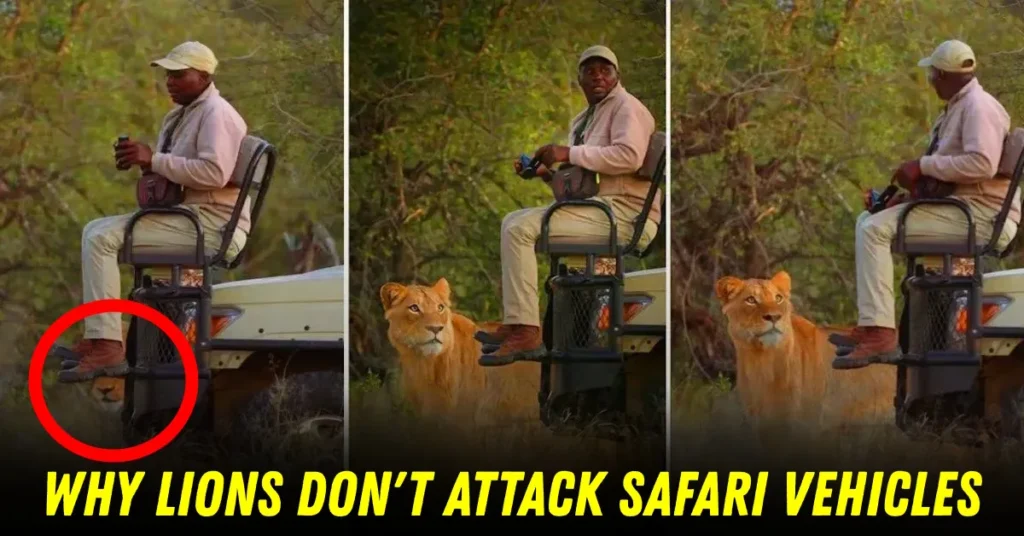 सफारी वाहनावर सिंह किंवा इतर वन्य प्राण्यांचा कोणताही हल्ला टाळण्यास मदत करणारी सर्वात मोठी गोष्ट म्हणजे PERCEPTION. सफारी वाहनात सिंह वैयक्तिक माणसांमध्ये फरक करत नाहीत. त्याऐवजी, संपूर्ण रचना ज्यामध्ये सफारी वाहन आणि मानव एकच मोठा आणि अपरिचित प्राणी आहे. आणि हे एकत्रित सिल्हूट त्यांना आक्रमण करण्यासाठी खूप मोठे दिसते.
