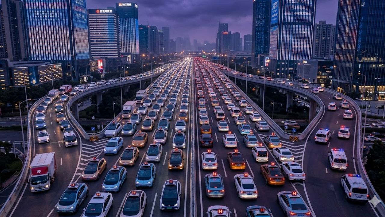 हायफाय तंत्रज्ञान आले आहे! चीनमध्ये ड्रायव्हरलेस कारचा आक्रोश; एकाच वेळी 100 हून अधिक गाड्या थांबल्या