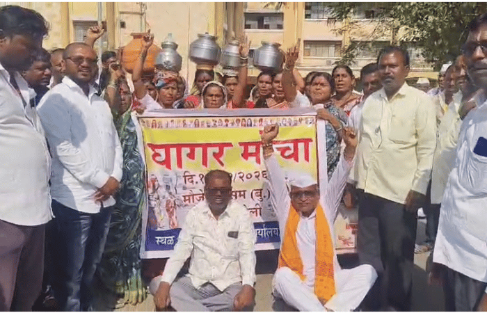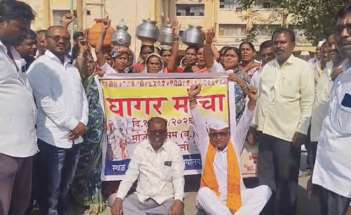 हिंगोली तालुक्यातील सिरसम बु. येथील ग्रामस्थांना घरोघरी पाणी मिळावे, यासाठी जिल्हा परिषदेच्या ग्रामीण पाणीपुरवठा विभागाकडून जलजीवन मिशन योजनेंतर्गत नळयोजना करण्यात आली आहे. या योजनेंतर्गत कोट्यावधी रूपयांचा खर्च करण्यात आला. मात्र, अद्यापपर्यंत गावात पाण्याचा एक थेंबही आला नाही. अवघ्या काही दिवसांवर उन्हाळा आला आहे. परंतु, आतापासूनच सिरसम गावामध्ये पाणीटंचाई निर्माण झाली आहे. त्यामुळे जलजीवन मिशन योजनेंतर्गत करण्यात आलेल्या कामातून घरोघरी पिण्याचे पाणी मिळावे, यासाठी ग्रामस्थांकडून प्रशासनाकडे पाठपुरावा करण्यात येत आहे. परंतु, या मागणीकडे दुर्लक्ष होत असल्यामुळे संतप्त झालेल्या शेकडो महिलांनी डोक्यावर हंडे घेत मंगळवारी (10 फेब्रुवारी 2026) जिल्हाधिकारी राहुल गुप्ता यांच्या दालनासमोर ठिय्या आंदोलन केले.