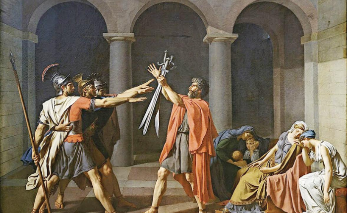 सतराशे ऐंशीच्या दशकात फ्रान्समध्ये क्रांतीचं वातावरण होतं. फ्रान्सची आर्थिक परिस्थिती वाईट होती. जनतेला खायलाही मिळत नव्हतं. लोक बंड करू शकतात, हे त्या काळचा राजा लुई (सोळावा) याला कळलं होतं. म्हणून त्यानं विचार केला की, कलेच्या माध्यमातून जनतेच्या मनावर ‘त्याग’ आणि ‘कर्तव्य’ ही मूल्यं बिंबवता येतील. यासाठी त्यानं चित्रकार जॅकस डेव्हिड याला एक चित्र काढायला सांगितलं. राजाचा असा उद्देश होता की, लोकांनी हे चित्र बघावं आणि स्वतला सांगावं, ‘देश संकटात आहे, आपण राजाला साथ दिली पाहिजे.’