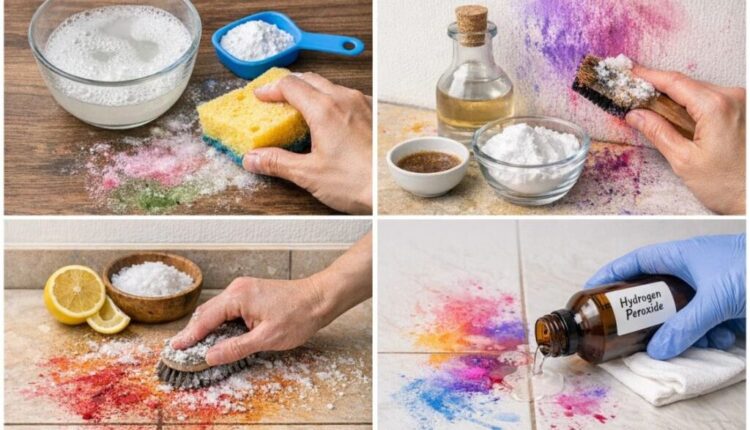 तुमच्या घरात हलक्या रंगाच्या फरशा असलेला मजला असेल तर त्यावरील रंगाच्या डागांवर सर्वप्रथम हायड्रोजन पेरॉक्साइड टाका. त्यानंतर 10 मिनिटांनी कपड्याने स्वच्छ करा.