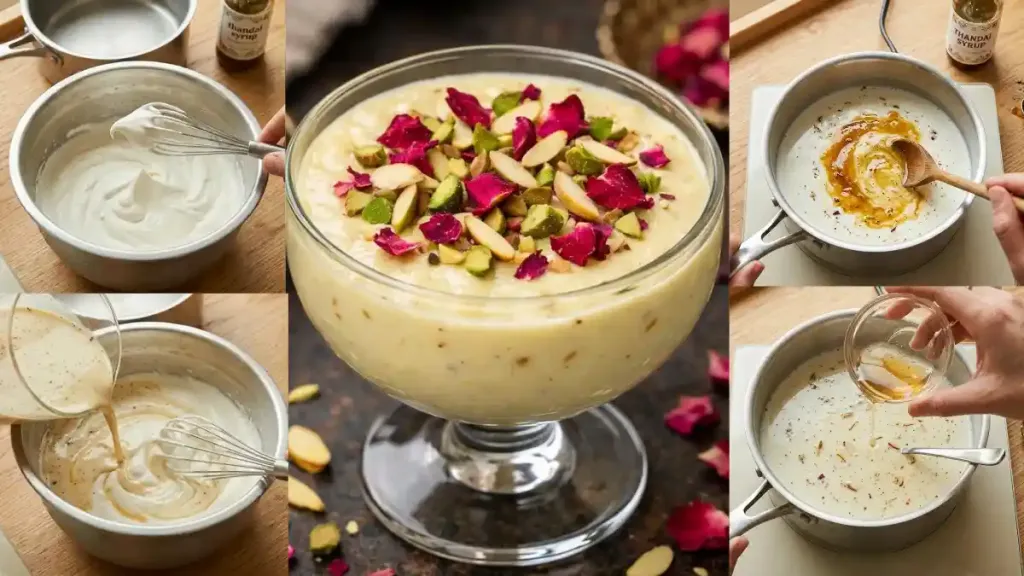 • तयार मिश्रण सर्व्हिंग ग्लास किंवा भांड्यात घाला आणि बदाम, पिस्ता आणि गुलाबाच्या पाकळ्यांनी सजवा.