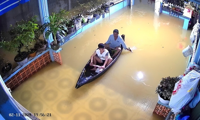 28 ऑक्टोबर 2025 रोजी ह्यू येथील डियू झुआन यांच्या घराचा पहिला मजला एक मीटरपेक्षा जास्त पाण्यात बुडाला होता. फोटो सौजन्याने झुआन
