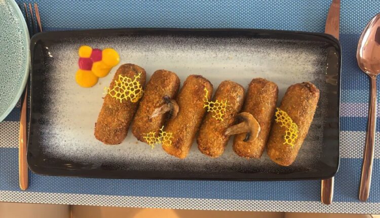त्याचे चट्टू बेसरा क्रोकेट्स एक अडाणी मशरूम-मोहरीच्या तयारीचा पुनर्व्याख्या करतात. मशरूम पिवळ्या मोहरीमध्ये मॅरीनेट केले जातात, कांदा, लसूण, कसुरी मेथी आणि मसाल्यांनी तळलेले असतात, नंतर क्रोकेट्स आणि उथळ तळलेले असतात – बाहेर कुरकुरीत, तिखट आणि आतून मातीचे.