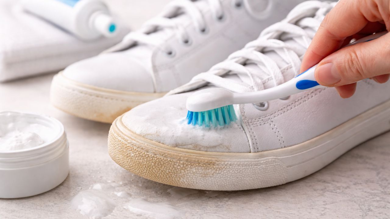 पांढरे शूज पिवळे झाले आहेत? या गुप्त टूथपेस्ट हॅकसह तुमचे स्नीकर्स 5 मिनिटांत चमकवा