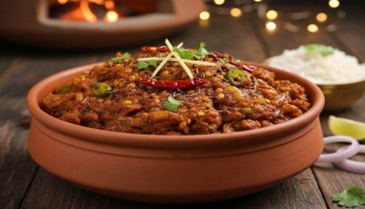 - सर्व्ह करा: झाकण काढा आणि कोळशाची वाटी टाकून द्या. उरलेल्या ताज्या कोथिंबिरीने भरता सजवा आणि गरमागरम सर्व्ह करा!