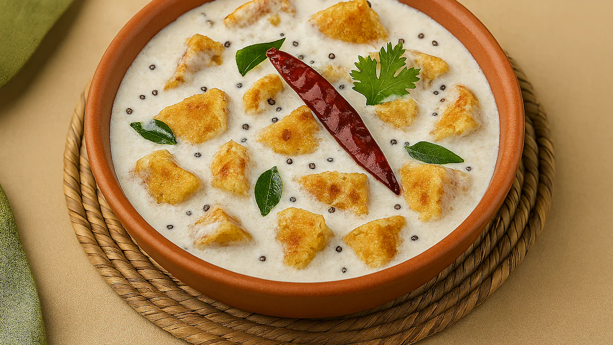 राजस्थानी चीला रायता त्याच्या पोत आणि स्वादांच्या आरामदायी संतुलनासाठी वेगळे आहे. हलके मसालेदार दह्यात भिजवलेले मऊ, चवदार चीले ताजेतवाने आणि भरणारे दोन्ही प्रकारचे डिश तयार करतात. टेम्परिंग उबदारपणा वाढवते, ज्यामुळे ते संपूर्ण जेवण किंवा मनापासून तयार होते.