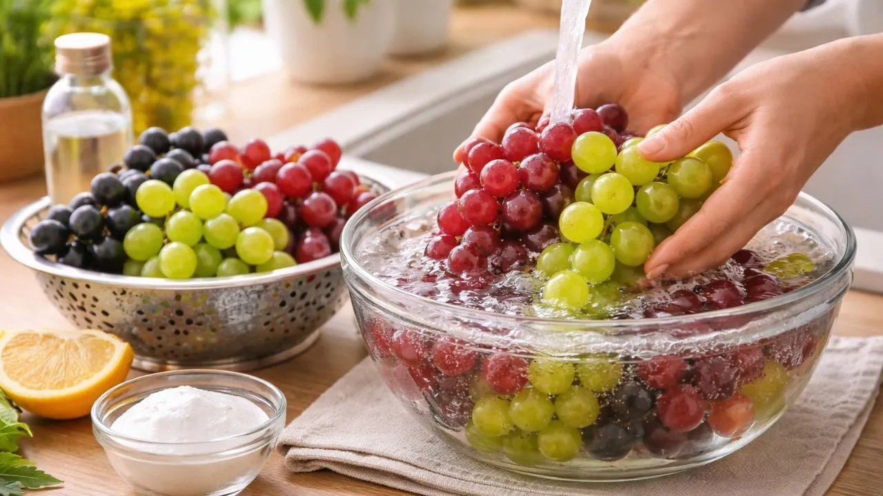 द्राक्षे पूर्णपणे सुरक्षित करण्यासाठी फक्त साध्या पाण्याने धुणे पुरेसे नाही. घरच्या घरी काही नैसर्गिक आणि प्रभावी पद्धतींचा अवलंब करून तुम्ही द्राक्षातील हानिकारक रसायने आणि घाण पूर्णपणे काढून टाकू शकता.