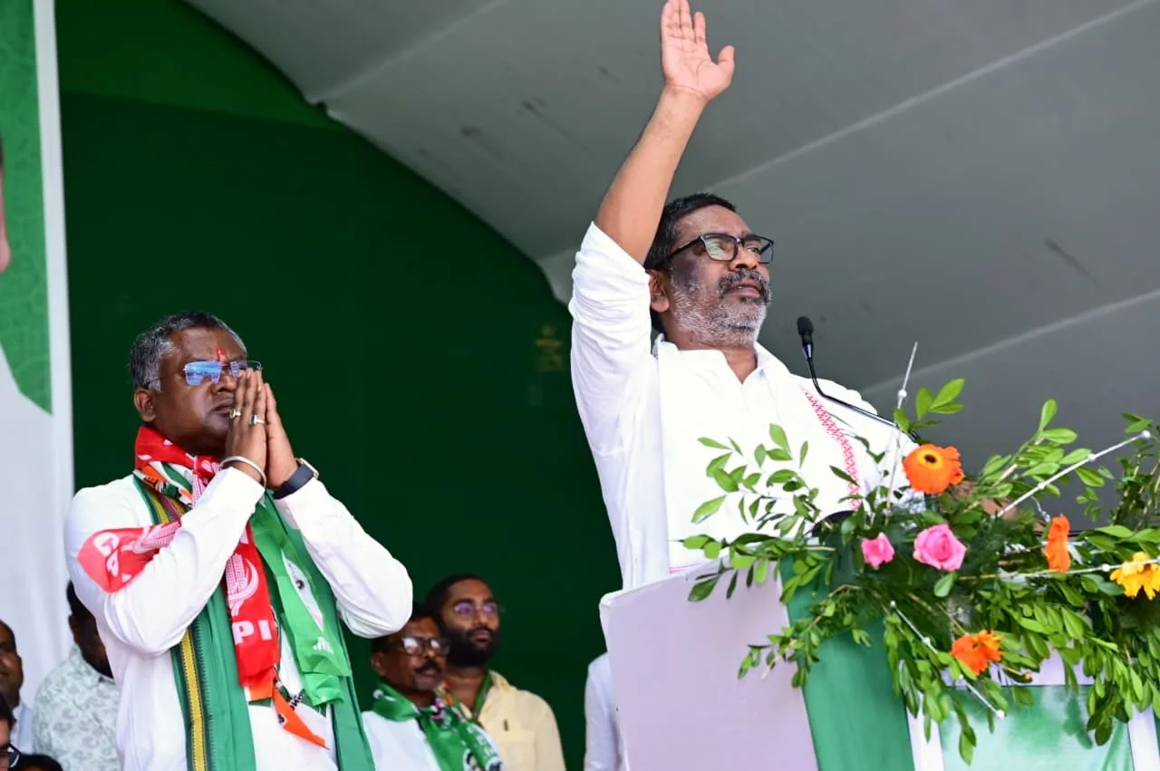 जाहीर सभेला संबोधित करताना मुख्यमंत्री हेमंत सोरेन म्हणाले की, बाबा दिशोम गुरू शिबू सोरेन यांच्या निधनानंतर आमचे मोठे बंधू मंत्री रामदास सोरेन यांचेही निधन झाले, हा काय योगायोग आहे माहीत नाही. आपण हे सांगू शकत नाही, परंतु अशी परिस्थिती निर्माण करू शकणारी काही शक्ती नक्कीच आहे. अशी परिस्थिती निर्माण झाली की आम्ही उमेदवार म्हणून सोमेश बाबूचे नाव घेतले. घाटशिल्याच्या इतिहासात प्रथमच 20 ते 22 हजारांहून अधिक मताधिक्याने ऐतिहासिक विक्रमी मताधिक्याने तुमच्या रामदास सोरेन यांना आमदार केले, त्यावेळी विरोधी उमेदवाराचे खातेही उघडू नये अशा पद्धतीने मतदान करावे लागेल. सुरक्षा ठेवही जप्त करावी. यावेळी मतविभागणी झाली नसून, निवडणुकीचे अर्ज भरण्यासाठी आणखी दोन-तीन दिवस उरले आहेत. म्हणूनच आम्ही सध्या जास्त बोलत नाही. जेव्हा आपण शेतात येतो तेव्हा आपल्यावरही थोडेसे भूत येते. कधी कधी खूप बोलले जाते. पण अजून वेळ आहे. आमच्या विरोधी पक्षाच्या लोकांनो, पूर्ण तयारीनिशी ऐका, विविध राज्यातून डझनभर मुख्यमंत्री येऊन तळ ठोकतील. हा एकच मुख्यमंत्री डझन-दोन डझन मुख्यमंत्र्यांनाही मागे टाकेल. कारण इथला मुख्यमंत्री आम्ही नसून, इथला मुख्यमंत्री समोर बसलेली जनता आहे. त्याची ताकद ही माझी ताकद आहे.