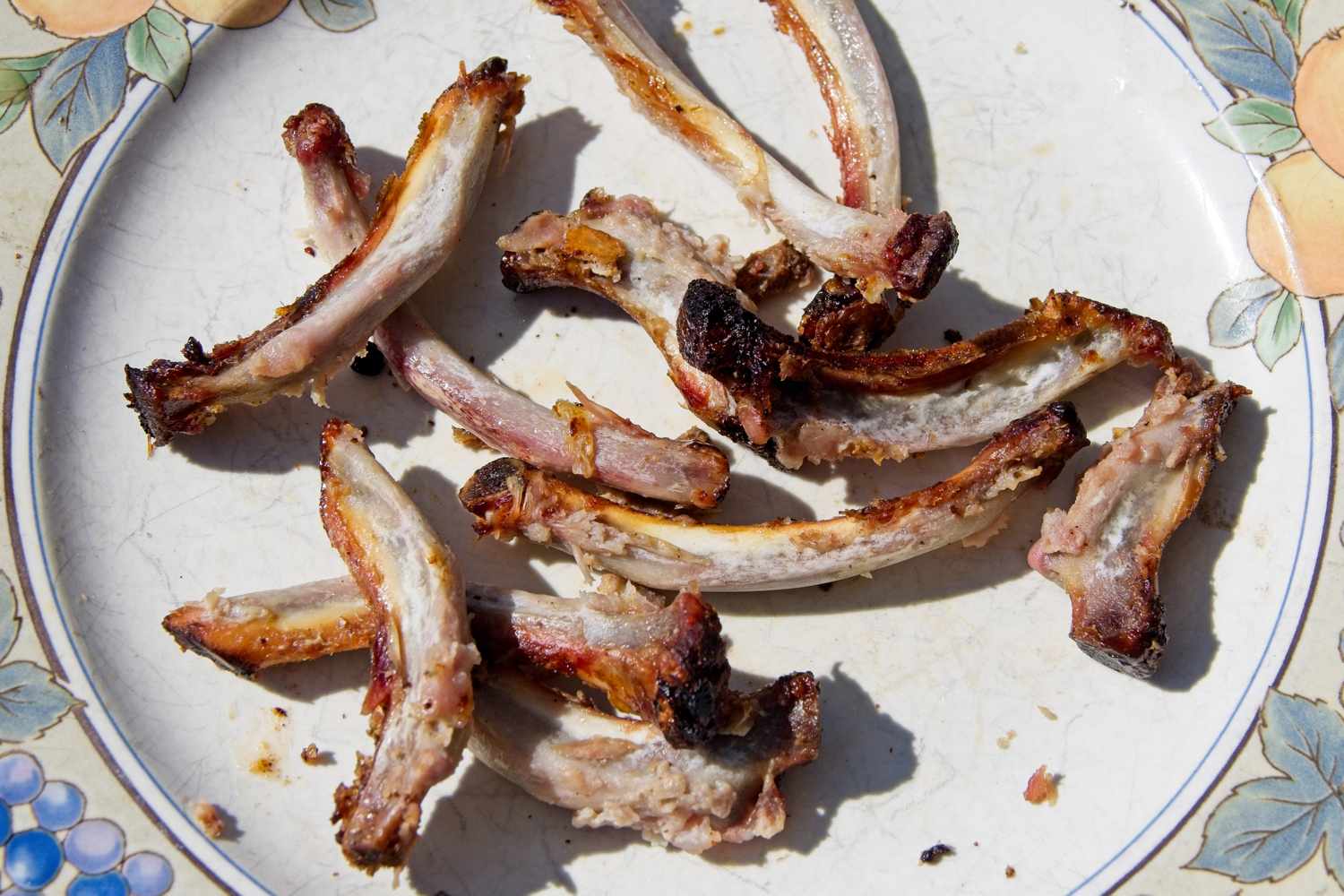 पण मी तिला कोंबडीच्या हाडांची टोके कुरतडताना पाहीन आणि बाकीच्यांनी स्तनाच्या निस्तेज टुंड्रावर मेजवानी केली. तिचं कधीच मनावर मी त्या भागांसाठी तिच्याशी कधीच लढणार नव्हतो आणि मला हे कधीतरी स्वतःसाठी एक्सप्लोर करावे लागेल. आता, माझ्या स्वतःच्या घरात, मी फक्त पोल्ट्री फेमरची टोकाची टोपी चघळणार नाही, माझ्या पिंकीला स्टीकच्या हाडाच्या मज्जा विहिरीत ढकलणार नाही आणि माशाची शेपटी माझ्या दातांनी आटिचोकच्या पानांप्रमाणे खरवडणार नाही — मी मणके आणि सांगाडे एअर फ्रायरमध्ये टाकीन आणि ती उरलेली कातडी खाली येईपर्यंत आणि ट्रायस्टिंगचा धोका पत्करेन. मला तुमचे बटाट्याचे चिप्स आणि कॉर्न नट्स दिसत आहेत आणि मी तुम्हाला चिकन नेक आणि फिश स्केलेटनचा आकर्षक क्रंच वाढवतो.