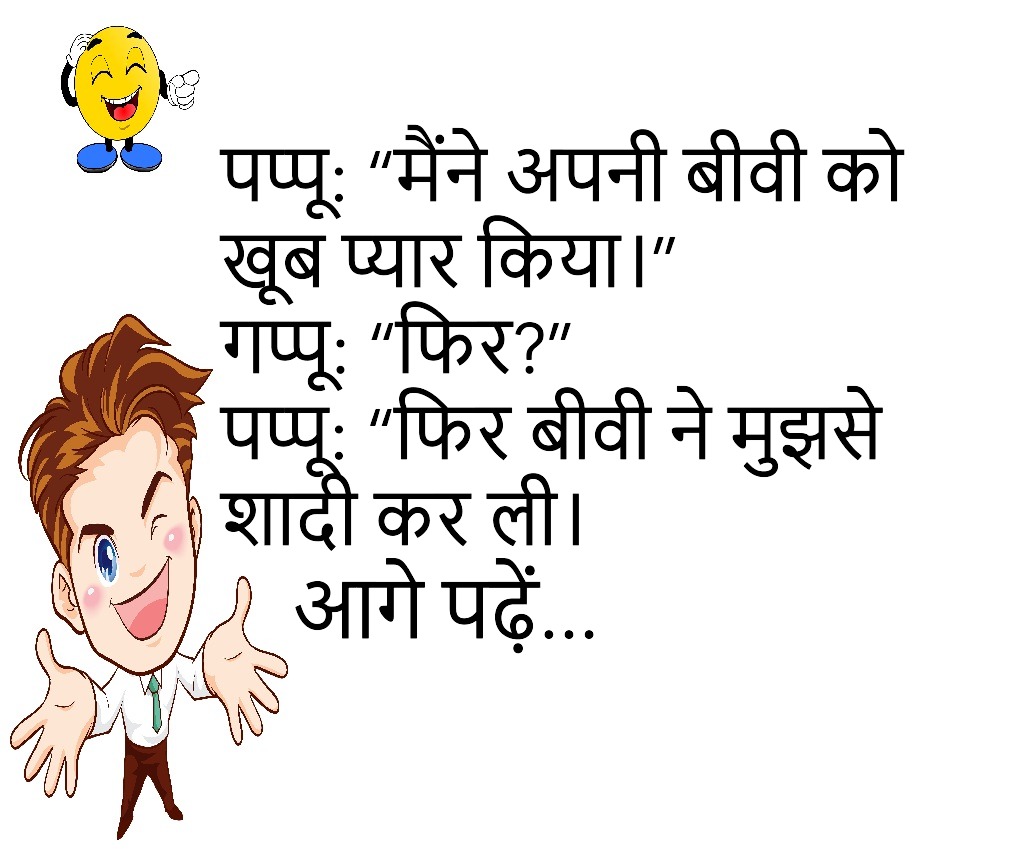 पप्पू: “मग माझ्या बायकोने माझ्याशी लग्न केले.”