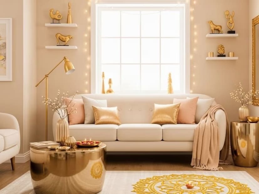 चला लिव्हिंग रूम किंवा आसन खोलीबद्दल बोलूया, हा घराचा सर्वात महत्वाचा भाग आहे. हे ठिकाण शांतता आणि रिसेप्शनची भावना देते. म्हणूनच, त्याचा रंग असा असावा की केवळ त्या जागेवरच नव्हे तर उबदार देखील. येथे क्रीम, पेस्टल पीच, लाइट बेस किंवा गोल्डन टोन वापरा. हा रंग खोली खुला आणि आकर्षक बनवितो. दिवाळीतील ही खोली सजवण्यासाठी सोनेरी किंवा धातूचा उच्चारण वापरा. हे लिव्हिंग रूमला आणखी मोहक बनवेल.