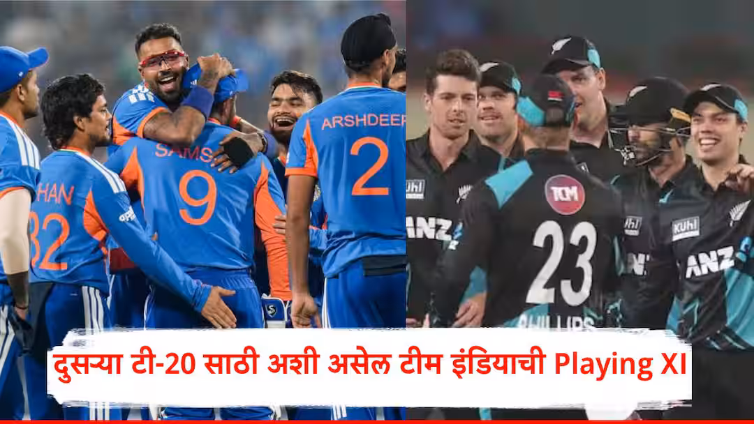 भारत विरुद्ध न्यूझीलंड 2रा T20 टीम इंडिया प्लेइंग इलेव्हन: न्यूझीलंडविरुद्धच्या पाच सामन्यांच्या टी-20 मालिकेतील पहिला सामना भारताने 48 धावांनी जिंकून 1-0 अशी आघाडी घेतली आहे. आज भारत आणि न्यूझीलंडविरुद्धच्या मालिकेतील दुसरा सामना (Ind Vs NZ 2nd T20) रायपूर येथील शहीद वीर नारायण सिंग आंतरराष्ट्रीय स्टेडियमवर खेळवला जाणार आहे. न्यूझीलंडविरुद्धच्या दुसऱ्या सामन्यासाठी भारताच्या प्लेइंग इलेव्हनमध्ये दोन बदल होण्याची शक्यता आहे. संजू सॅमसनने पहिल्या सामन्यात चांगली कामगिरी केली नाही, परंतु अभिषेक शर्माने नागपूरमध्ये जोरदार फटकेबाजी करत 35 चेंडूत 84 धावा ठोकल्या. दुसऱ्या टी-20 सामन्यात देखील संजू सॅमसन आणि अभिषेक शर्मा (Abhishek Sharma) डावाची सुरुवात करतील.